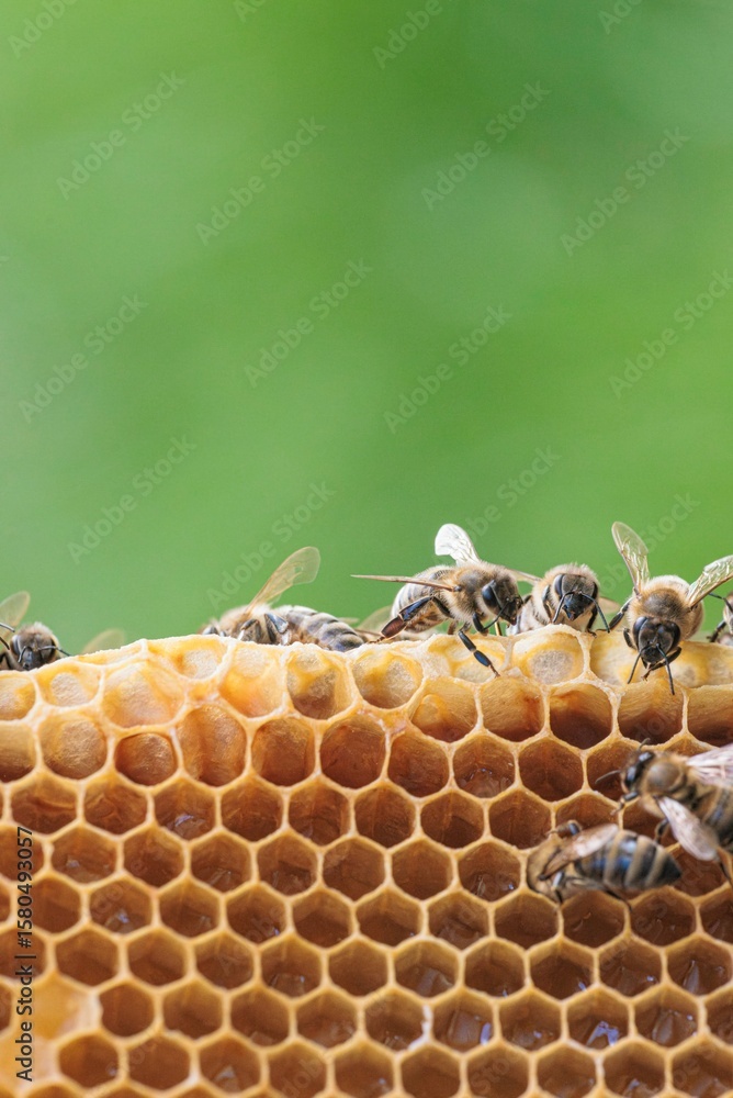 Amidst a surreal backdrop of vibrant colors, bees meticulously gather nectar from dazzling flowers, creating a whimsical tapestry of life and energy