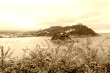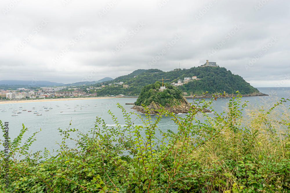 view of the city of San Sebastian, with La Concha beach, from Mount Urgull. Summer vacation scene in Spain