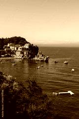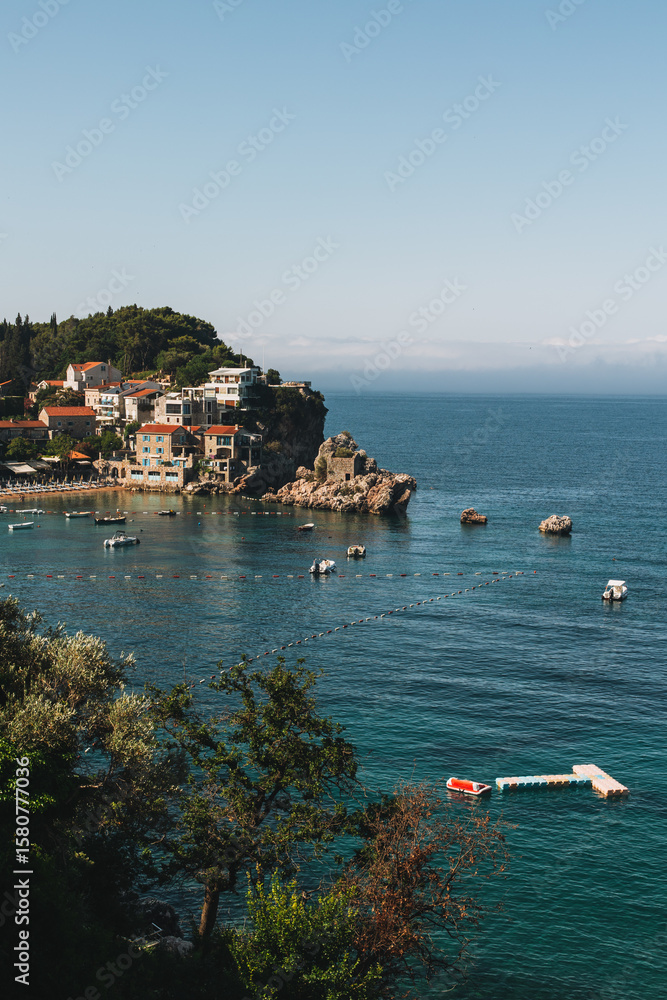Amazing view of Przno and the Adriatic sea near Budva, Montenegro on a summer day. Travel destination in Montenegro.