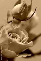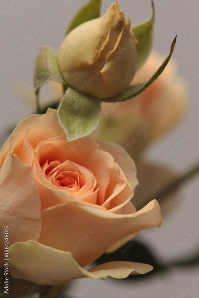 Close-up Selective soft focus cream beige pink color Rose flower bud, leaf. Nature blur natural background.