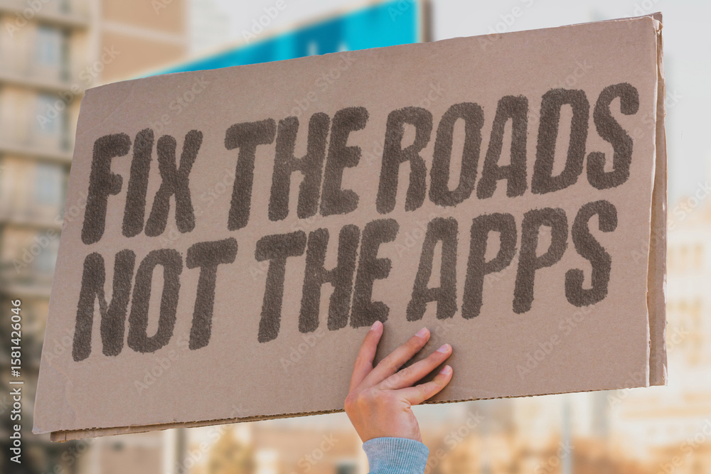 "Fix the Roads, Not the Apps" A protest against tech distraction while core infrastructure crumbles. INFRASTRUCTURE. TRANSPORT. ACCESS. SAFETY. MOBILITY. PUBLIC. PRIORITIES