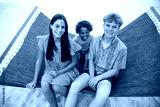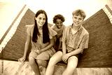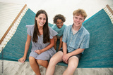 Casual Portrait of a diverse group of beautiful children. Cute smiling faces of hispanic girl, African American boy and caucasian boy. Smiling and relaxing together in a hammock at a beach resort