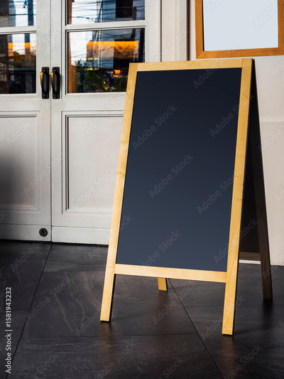 Blank chalkboard cafe menu Shop storefront Mock up sign stand
