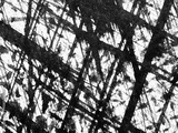 Black and white abstract artwork featuring dynamic lines and textures created with ink on paper
