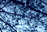 Beautiful green leaves on branches against a bright blue sky in the warm sunlight