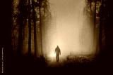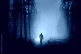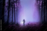 Man in forest, purple background design