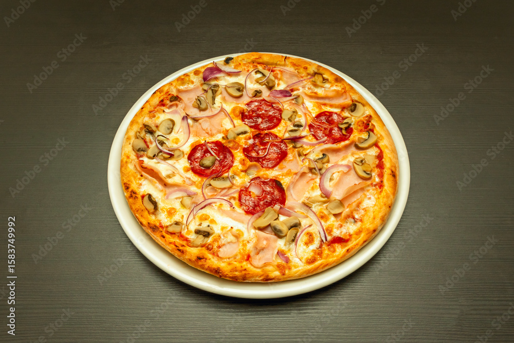 Thin, crispy dough ("scrocchiarella"), with a shallow, less pronounced edge than Neapolitan pizza