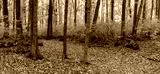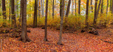 Panoramic view of colorful trees in autumn time at Maybury state park in Michigan.