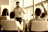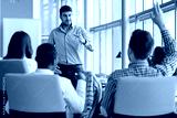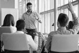 business, startup, presentation, strategy and people concept - man making presentation to creative team at office