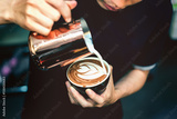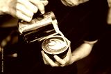How to make latte art by barista focus in milk and coffee in vintage color tone.