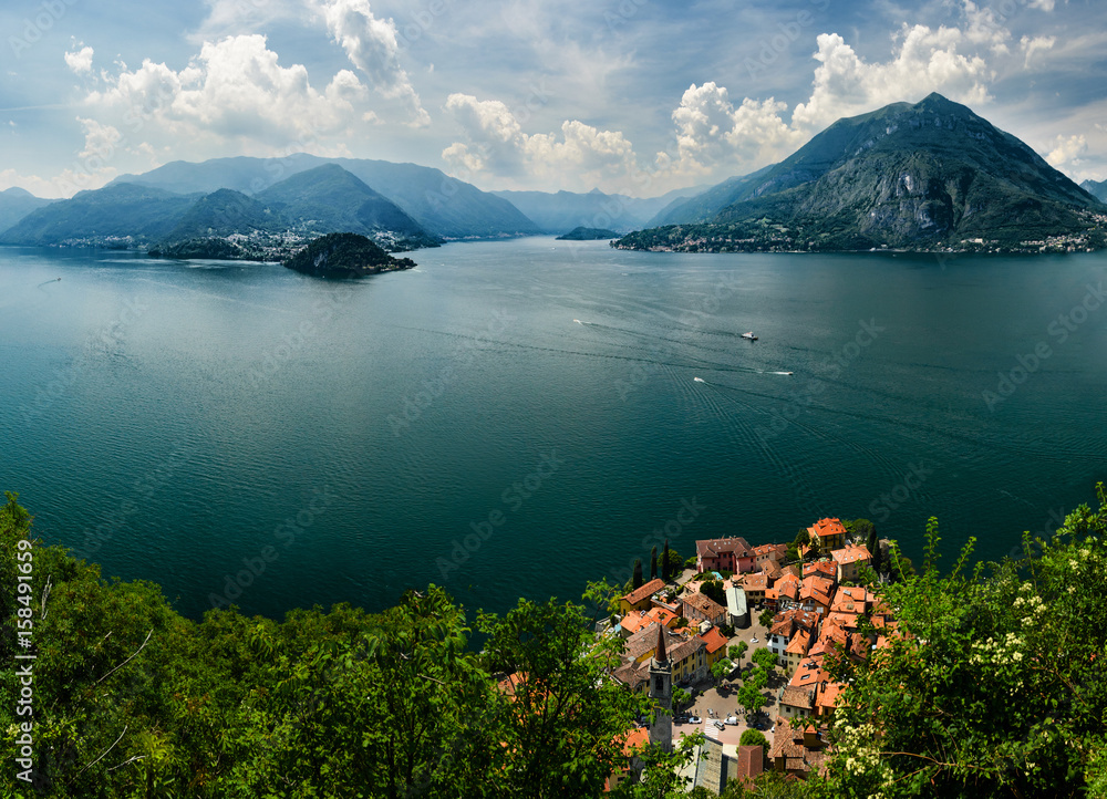 Aerial view on Lake Como and Varenna from Castello di Vezio, Lombardy, Italy