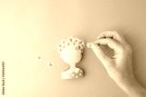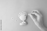 DIY kids art project showing daisy crown placement on painted paper doll, great for educational materials, eco friendly branding, floral crafts, family content, sustainable design assets,