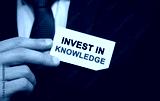Businessman putting a card with text Invest In Knowledge in the pocket