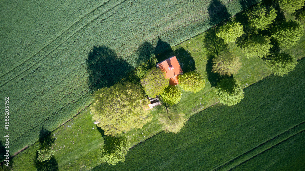 Chapel of Our Lady of Lourdes and blooming landscape, Czech Republic