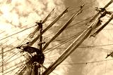Takelage, Masten und Segel eines Segelschiffes im Hafen von Eckernförde