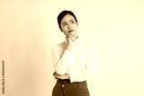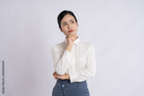 Thoughtful Woman: An image capturing a woman in contemplation against a simple background