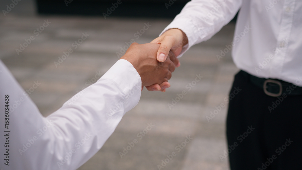 Close up business partners hands handshake businesspeople deal successful agreement cooperation team negotiation client collaboration meeting greeting interaction communicate trust contract colleague
