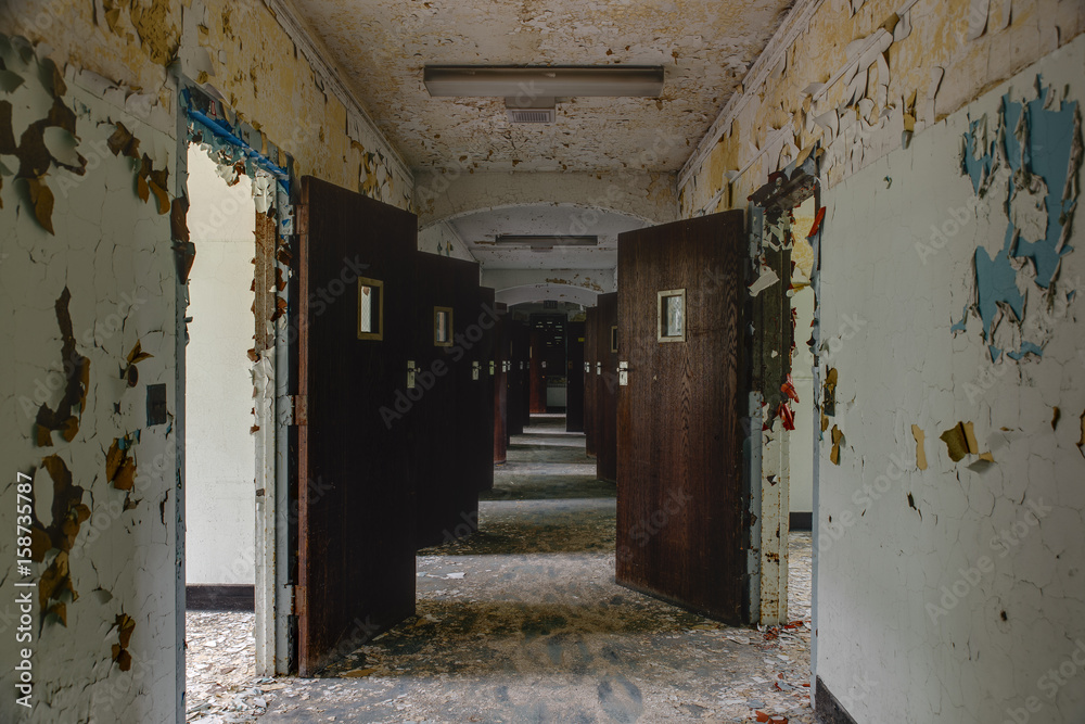 Abandoned Hallway with Doors in Old Hospital - New York