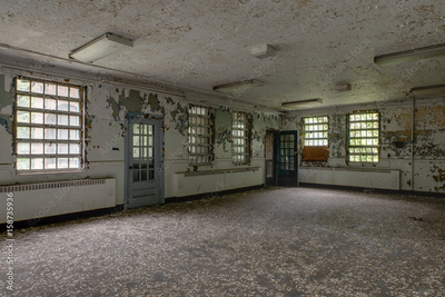 Abandoned Room with Windows and Doors in Old Hospital - New York