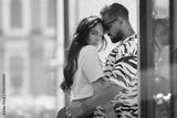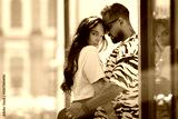 Happy couple in love hugging in the street. Smile, romance and young man and woman embracing for sweet moment together outdoor. Couple kissing on city street. People on romantic date.