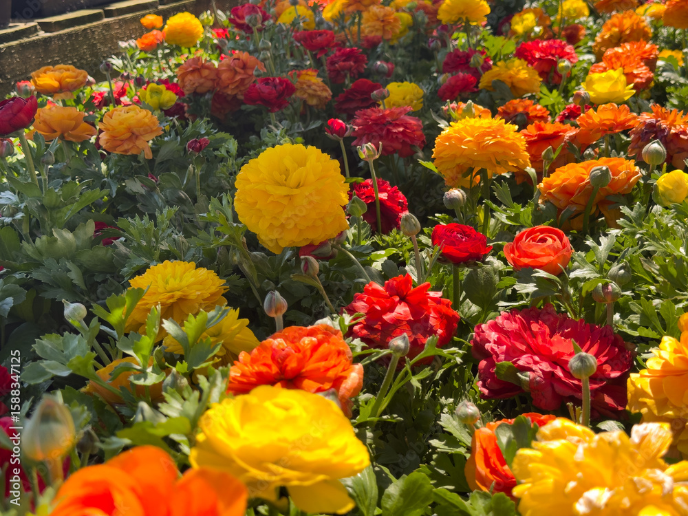 A view of a variety of ranunculus flowers.
