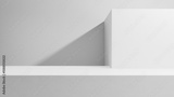 White empty geometric shapes display with professional light and shadows studio template background - white table mock up for product and advertisement. Empty white copy space for cosmetics