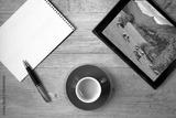 Tablet mit Foto vom Berg im Allgäu und Notizblock mit Kugelschreiber