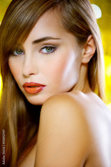 Portrait of beautiful young sexy woman on yellow background