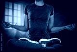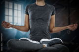 Fit woman while yoga exercises, workout in cinematic gym with sunlight, smoke and ropes – concept of fitness, endurance, motivation and healthy lifestyle