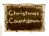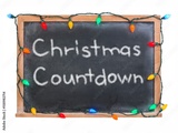 Christmas countdown written in white chalk on a black chalkboard surrounded with festive holiday lights isolated on white