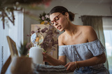 adult woman meticulously cleans dust from furniture in the living room