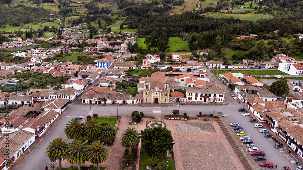 Tibasosa, Boyaca - Colombia. May 8, 2025. Aerial view from a drone. It is one of the 123 municipalities in the department.