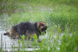 German shepherd dog shaking off water in lake