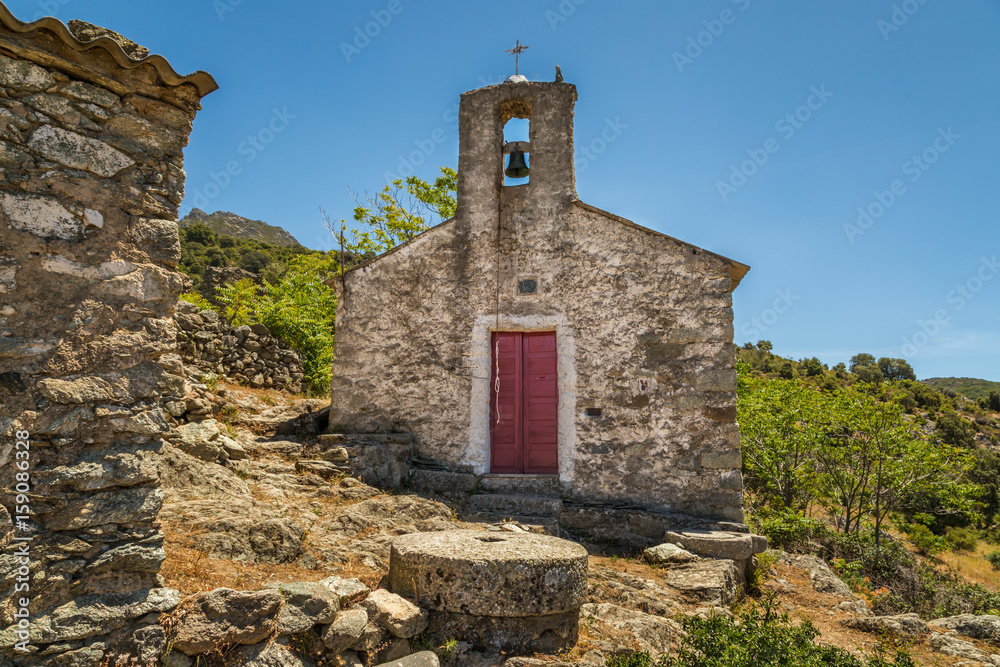 Old chapel in abandoned village of Casenove in Corsica