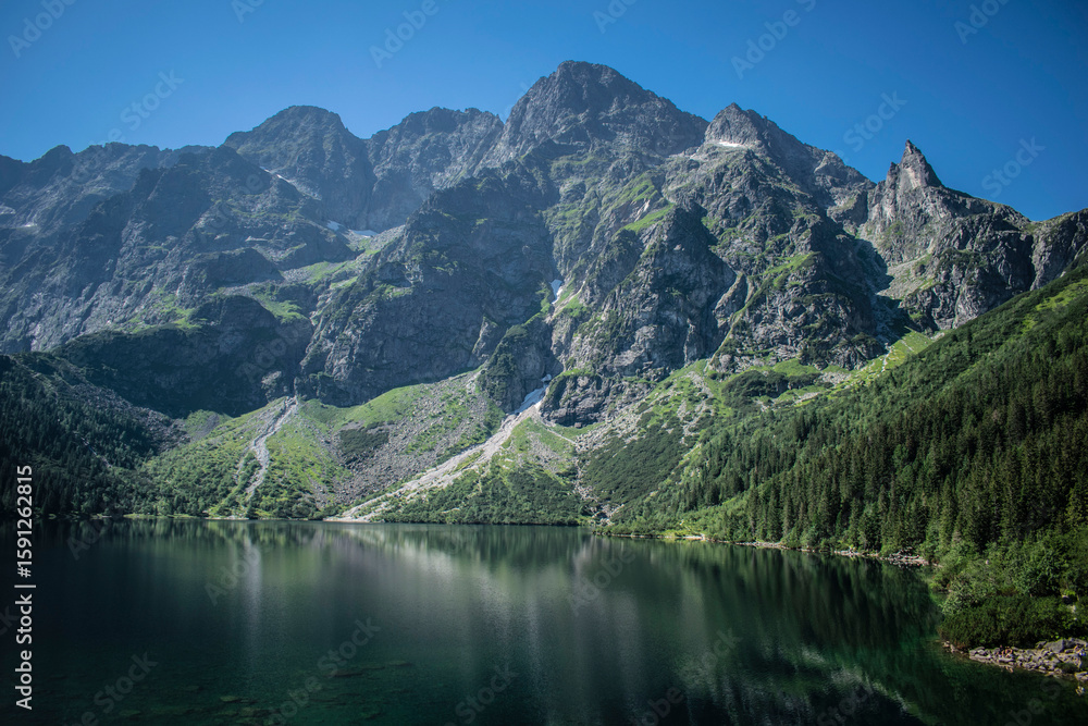 mountain views, rocky peaks, mountain pond, sea eye