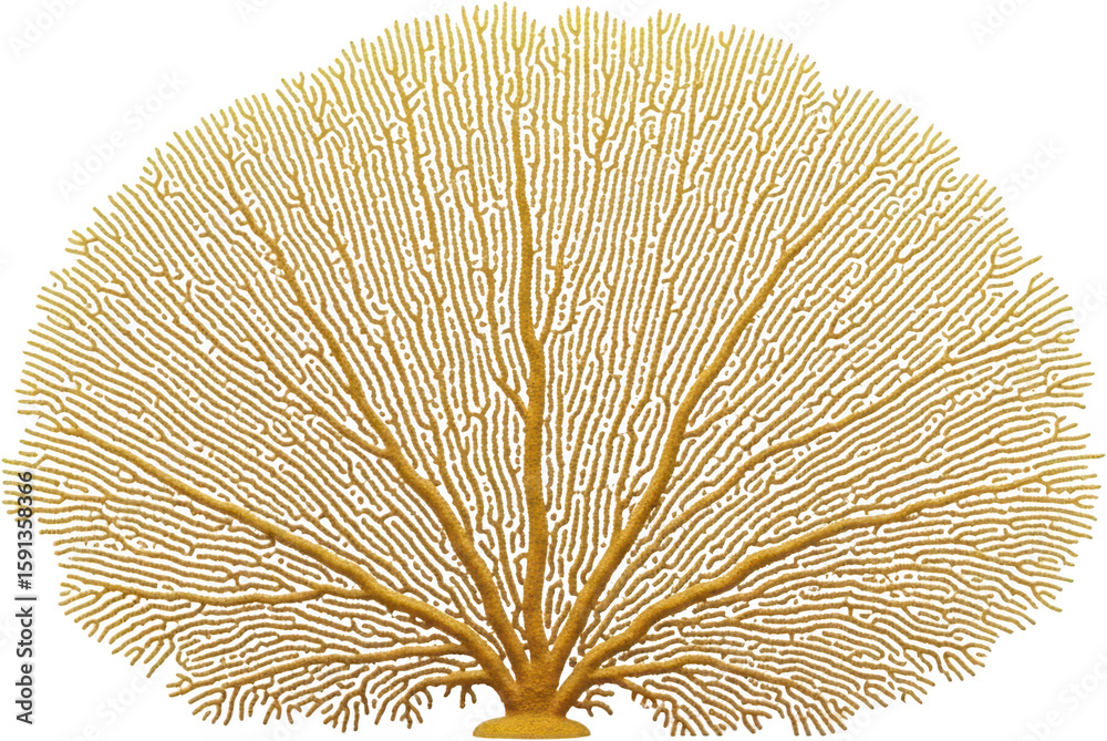 Golden fan coral detailed structure of branching polyps and skeleton sea fan transparent background