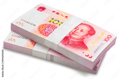 Bundle of 100 yuan banknotes isolated on white, Bundle of 100 yuan banknotes isolated on white background With clipping path.