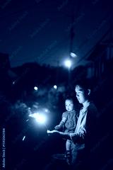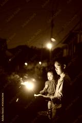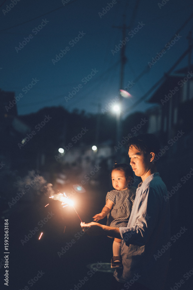 手持ち花火で遊ぶ親子