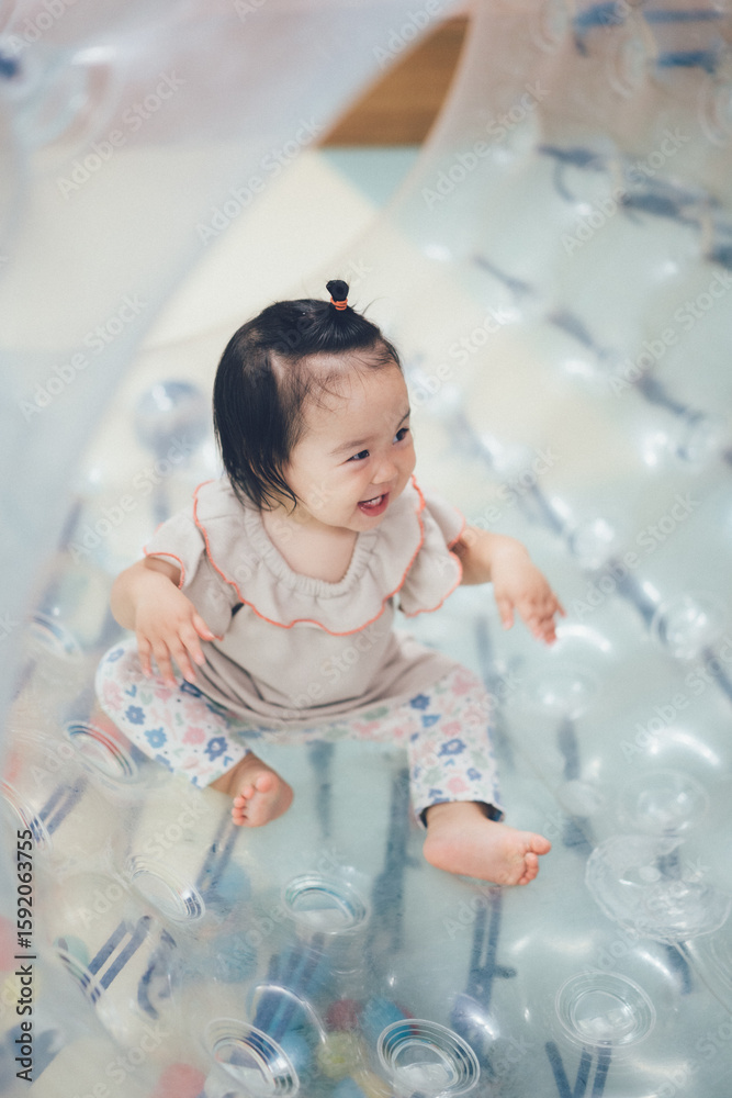 遊具の中で遊ぶ笑顔の幼児、楽しく学べる室内知育アクティビティ