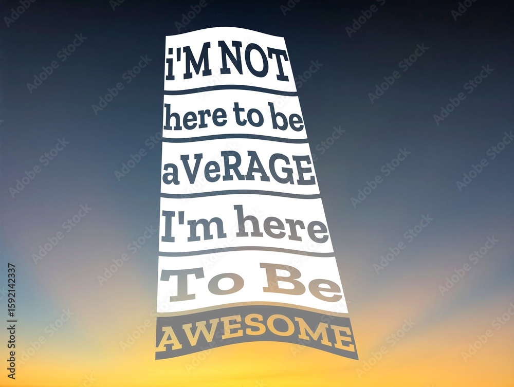 An empowering quote, I'M NOT here to be AVERAGE I'm here To Be AWESOME, displayed on a white, vertically oriented banner against a sunrise sky with blue and orange hues.