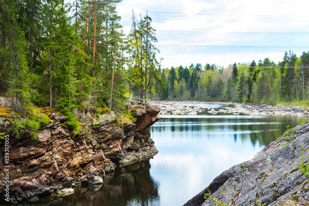 Vuoksa river and rocky canyon view in Imatra, Finland