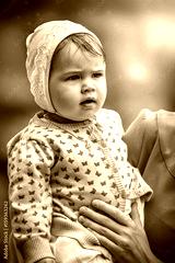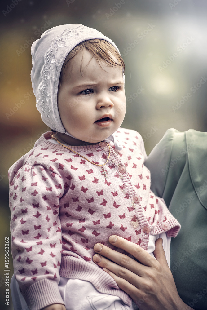 small child in the arms of the mother. Summer portrait.