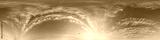 Sunset sky with bright glowing pink Cirrus clouds. Seamless spherical HDR 360 panorama. Full zenith or sky dome in 3D, sky replacement for aerial drone panoramas. Climate and weather change.
