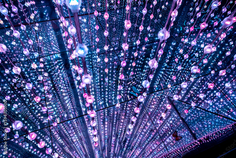 Colorful lamp strip, decorative lamp, Modern art exhibition with illuminated balls