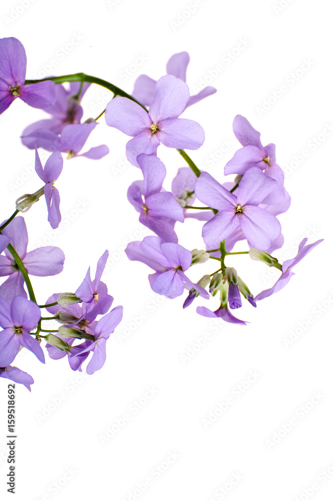 Delicate flowers of Hesperes (Night violet) on a clean white background close-up..