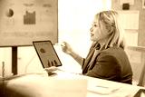 Business woman team leader explian declare insight data, powered by AI meeting assistants that streamline collaboration, automate action item creation, and deliver real-time meeting insights