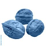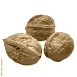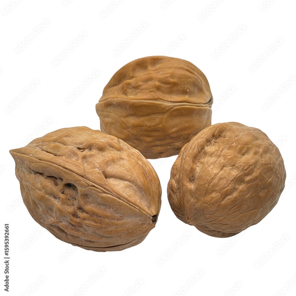 A whole walnut in its hard, wrinkled brown shell, uncracked and isolated on a white background