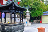 Hainan Island, Sanya: Nanshan Buddhist Center. View of the incense burner in front of the Temple