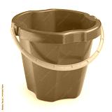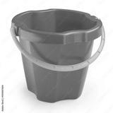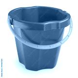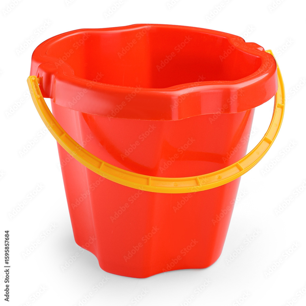 A child's red bucket on a white background.