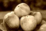 Nectarines on wooden table.